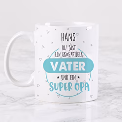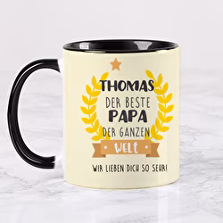 Wenn Sie nicht wissen, wie man personalisierte Tasse für den Vatertag herstellt, machen Sie sich keine Sorgen, denn in unserem Editor ist es sehr einfach. Wählen Sie einfach eines unserer Vatertagstasser-Designs aus und passen Sie es an Ihren Tasse an, so wie Sie es wünschen. Wir haben sehr coole Modelle, man weiß nicht, bei welchem man bleiben soll. Von den fröhlichsten und farbenfrohsten bis zu den minimalistischsten. Sie haben sie für jeden Geschmack und für alle Arten von Eltern.